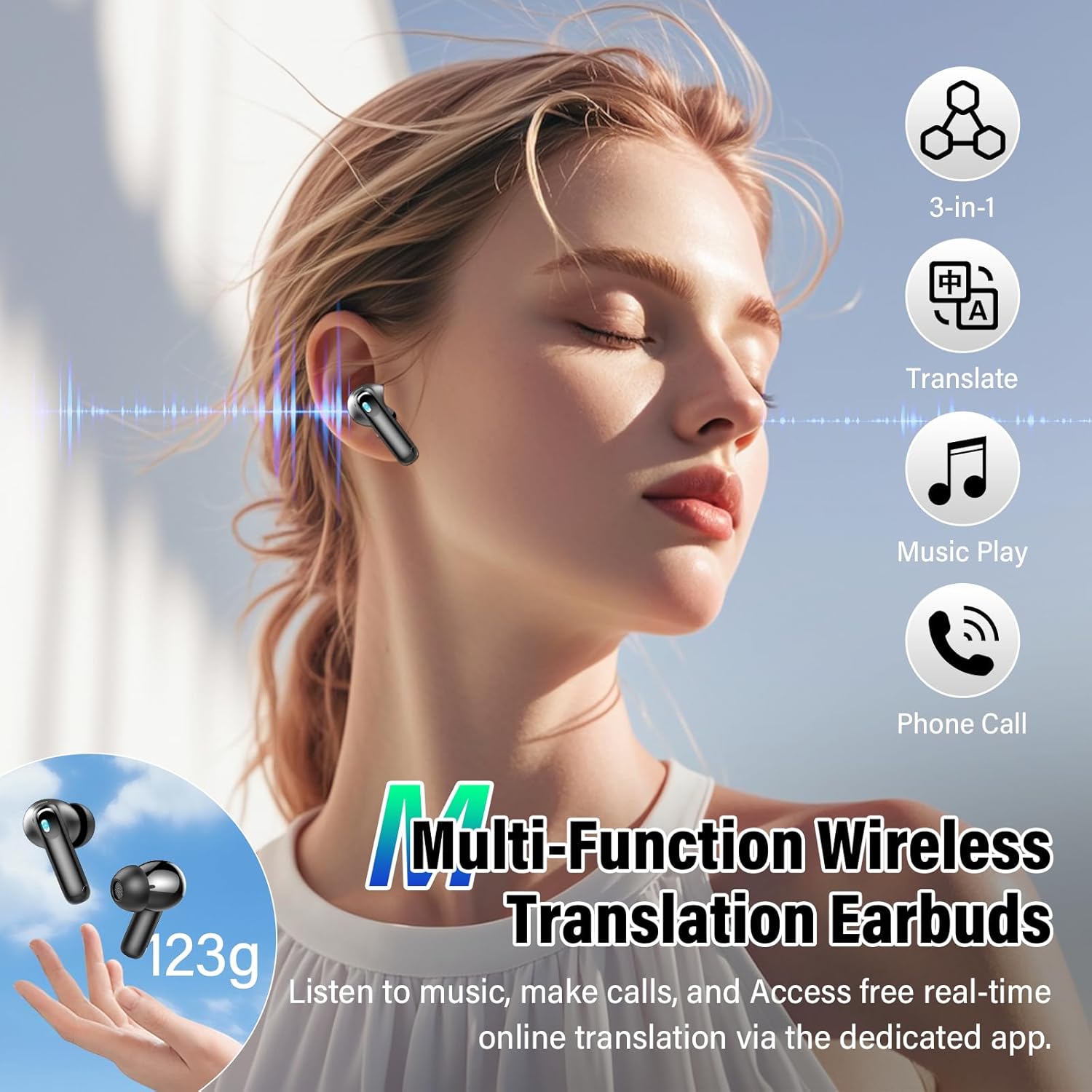5 EQ Modes and Deep Bass Stereo Sound: the translating earbuds also provide five adjustable equalizer modes (standard, classic, jazz, rock, pop), allowing you to freely adjust according to different music styles and find the sound performance that suits you best. In addition, these translation device with 13mm graphene speakers and triple-layer composite diaphragms, provide powerful bass(down to 50Hz), stunning treble(up to 5kHz) and clear mids.