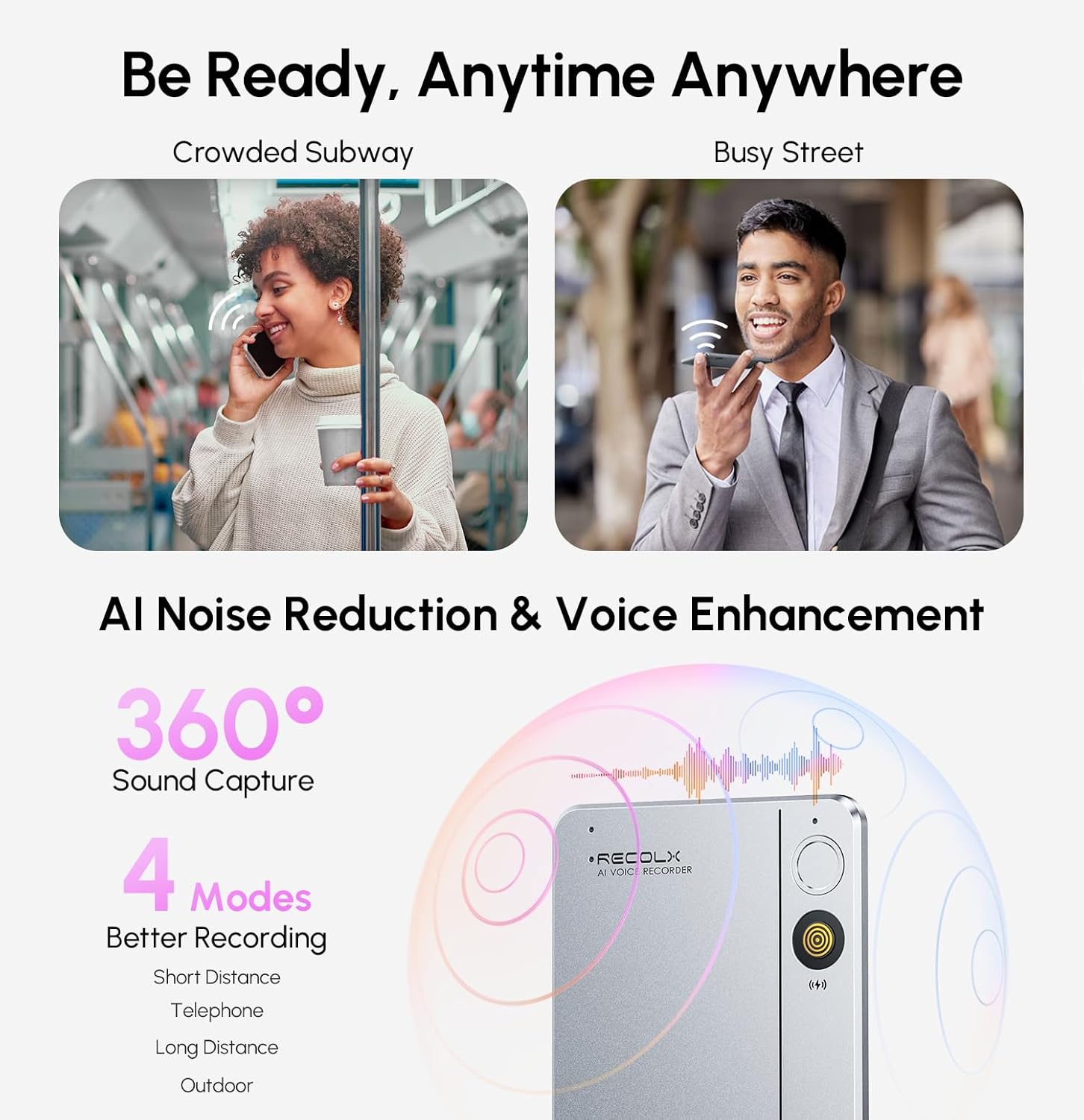 Clear Audio with Noise Reduction High-sensitivity microphone and intelligent noise reduction help capture your voice clearly, even in busy offices, classrooms or cafés, so transcripts stay accurate and easy to read.