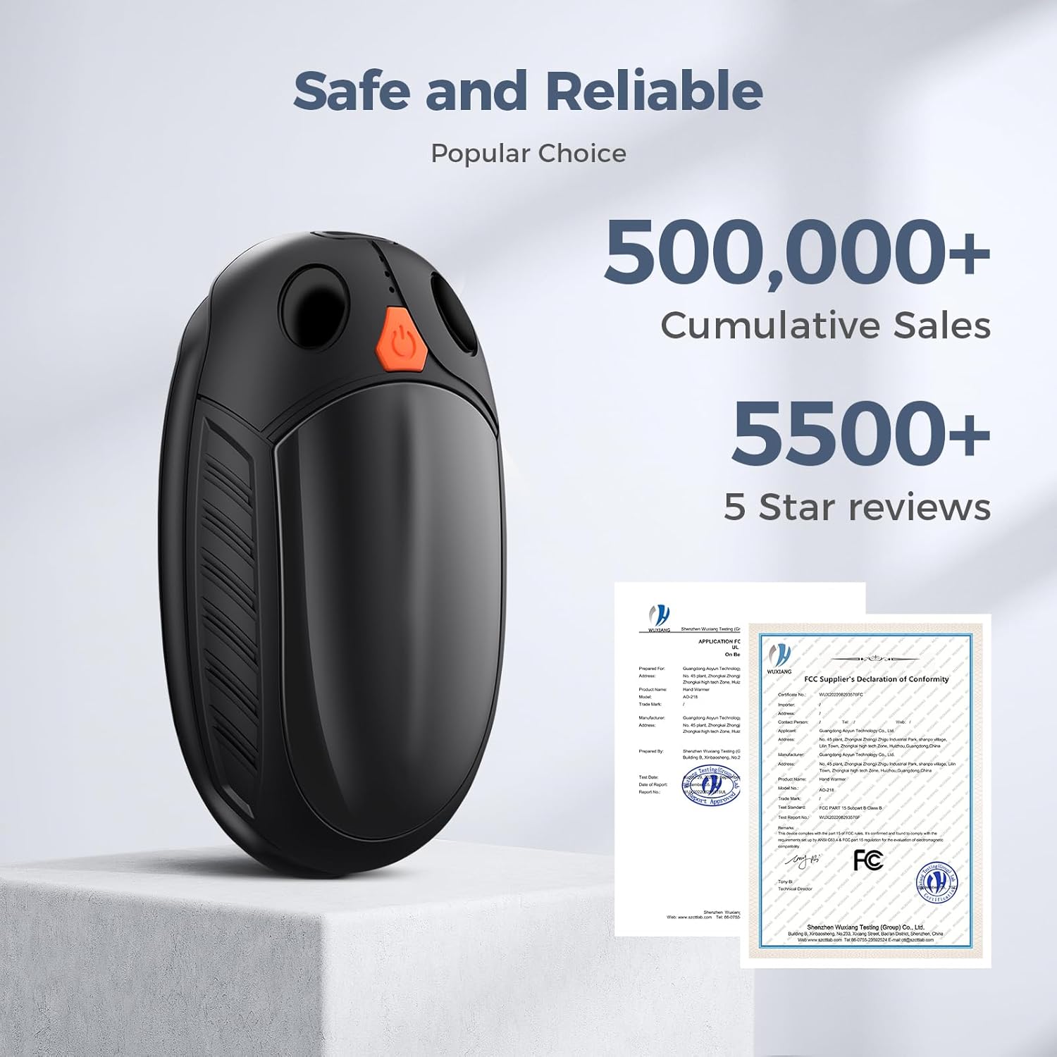 Long-lasting Heating Than Ever – This electric hand warmer adopt a new heating scheme and battery, minimal weight and maximum lasting Heating, provide up to 12 hours of heat.