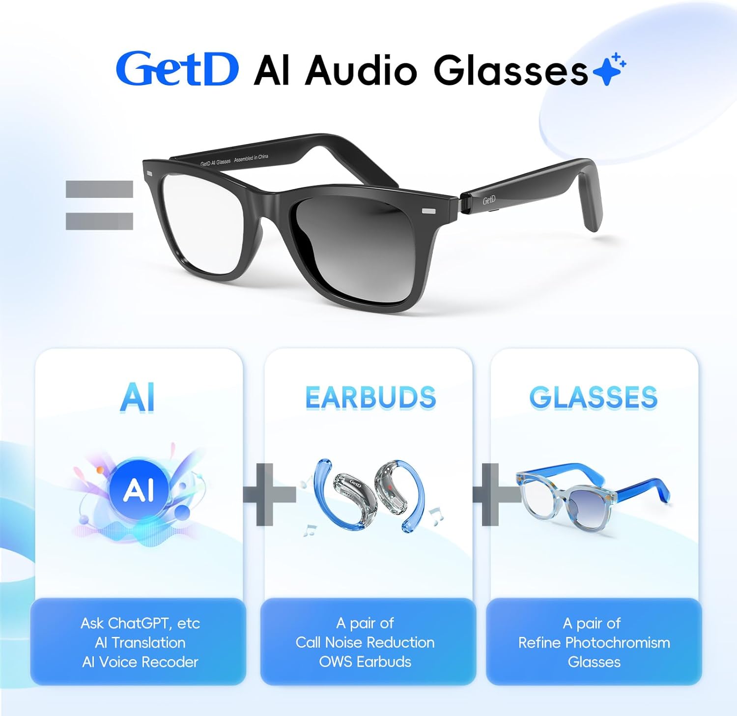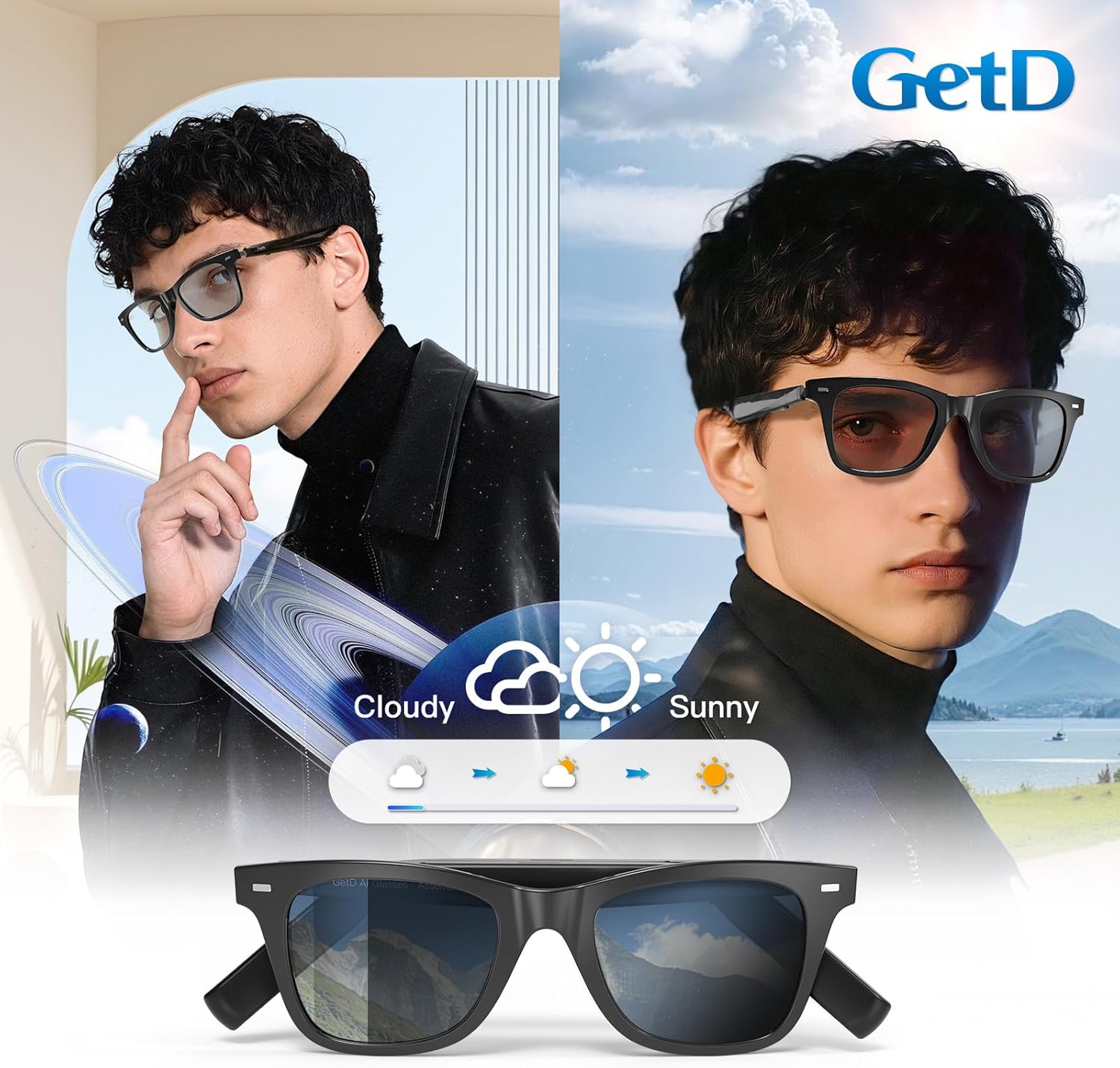 GetD AI Glasses for Men & Women, Smart Glasses Powered by ChatGPT, AI Real-time Translation with 145 Languages, 11H Music Play, Bluetooth Glasses with Photochromic Lens for Daily Use, Travel